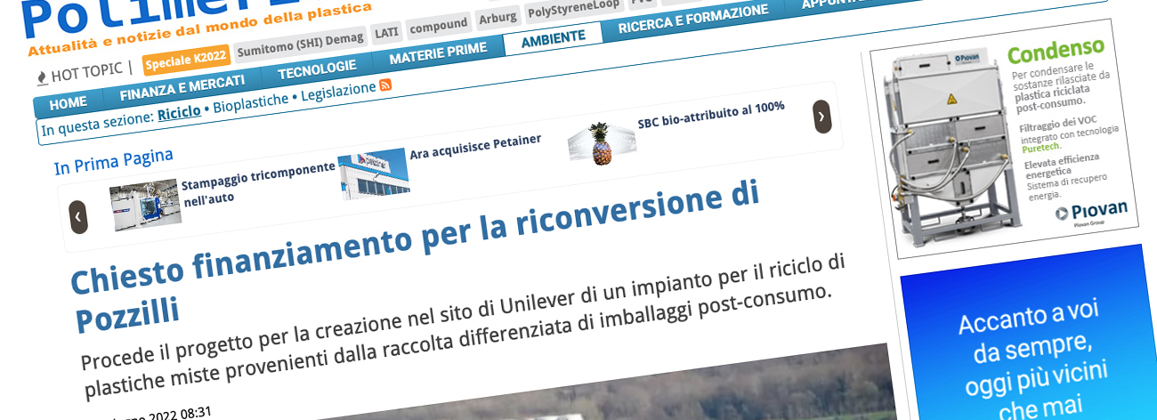Procede il progetto per la creazione nel sito di Unilever di un impianto per il riciclo di plastiche miste provenienti dalla raccolta differenziata di imballaggi post-consumo.